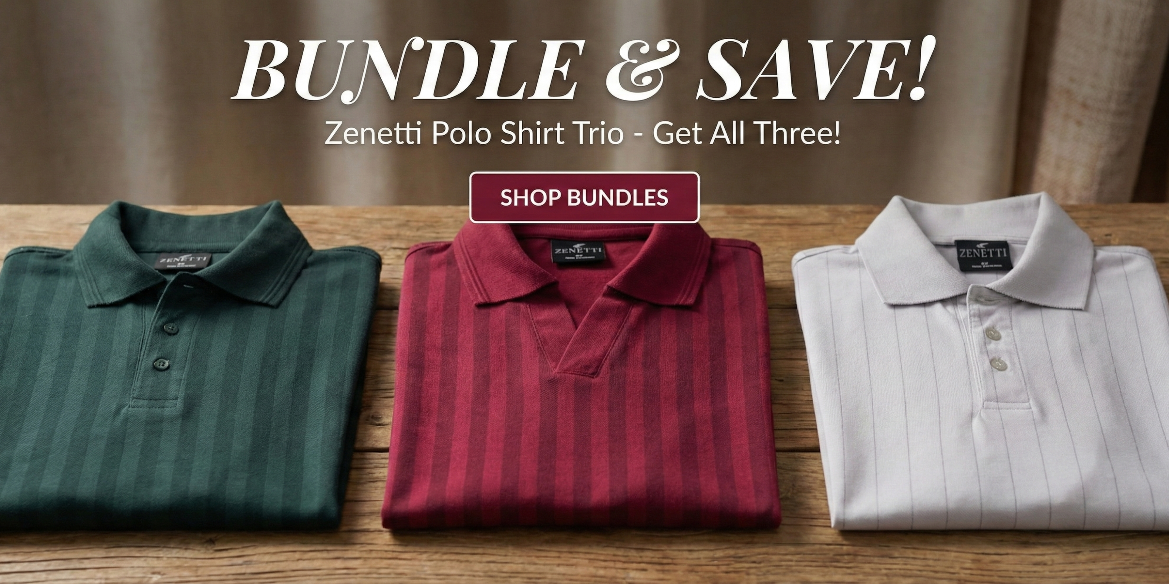 ZENETTI'S Signature Combo – Forest Green Johnny Collar Polo and Beige Pleated Trouser